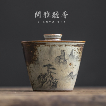 Banfan Jingdezhen lone product Chai Yaki Shino Yaki ceramic hand-painted retro Teacup Kung Fu tea set Japanese landscape cover bowl