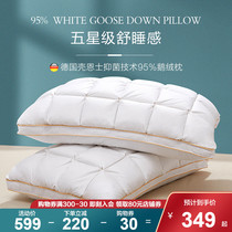Boyang feather pillow 95 white goose down five-star hotel single double antibacterial pillow cervical pillow home sleep help