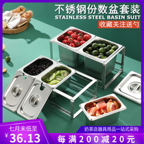 Stainless steel number of parts of the basin fraction box jam box Rectangular milk tea shop ice powder seasoning box shelf commercial