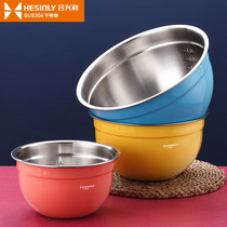 Color stainless steel basin with lid Round large thickened household kitchen egg bowl rice bowl Sealed insulation soup bowl