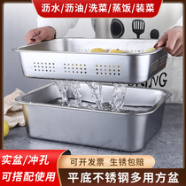 Rectangular stainless steel square basin Flat bottom punching number of parts basin Filter with hole amoy rice basin Vegetable drain basket oil spill basin