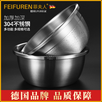 304 stainless steel stainless steel food grade three-piece set of household kitchen beating eggs and basins Baking drain basket washing basin