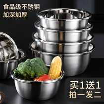 Stainless steel basin 304 food grade household baking and egg beating basin Extra thick deepened kitchen washing raspberry round soup basin