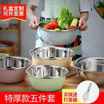 Stainless steel basin Five-piece round kitchen household deepened thickened basin set soup basin Egg beating and noodle washing basin