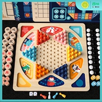 Children's flying chess checkers backgammon multipurpose chess table educational toy game wooden pupils