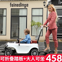 Children's electric car four-wheel swing stroller hand push dual drive remote control baby child toy car can sit on the car