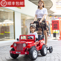 Children's electric car four-wheeled off-road vehicle 4WD with remote control car can sit on adult toy car double baby stroller