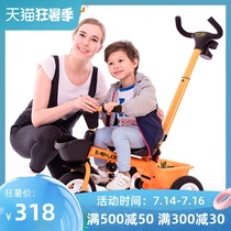 Two-child travel artifact Children's three-wheel push rod pedals can take people twin strollers Summer babies one before one after