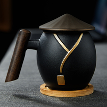Tea tea water separation Tea Cup Cup office glass water Cup wooden handle men's high-end Japanese Cup flower tea cup
