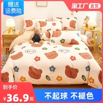 Four sets of beds bedding Washed Cotton Spring And Autumn Quilt Cover Schoolgirl Dormitory Bed Linen Three Sets Four Seasons Universal
