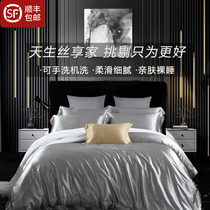 High-end genuine silk four pieces of mulberry silk silk satin-style minimalist bed sheet Quilt Cover Light Extravagant and Naked Sleeping Bed Bedding