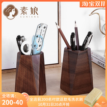Su Niang walnut pen holder wooden retro high-quality desk student desktop stationery storage solid wood pen box home