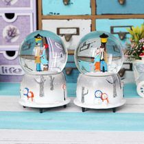Send girls Frozen snow snow with lights couple rotating creative music box large crystal ball gift