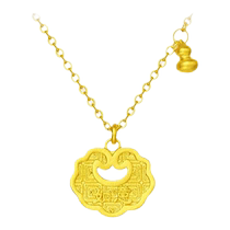 Lukfook Jewelry Ball Coin Shoulder Gold Necklace Women's Light Shadow Gold 5G Pure Gold Pendant Set Chain Priced 010860NA