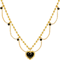 Lukfook Jewelry Fuman Heirloom Black Peach Heart Gold Necklace for Women Enamel Craftsmanship Full Gold Priced G21TBGN0009
