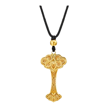 Caibai pure gold necklace, ancient gold Ruyi pendant necklace, national trend filigree lotus Ruyi braided necklace