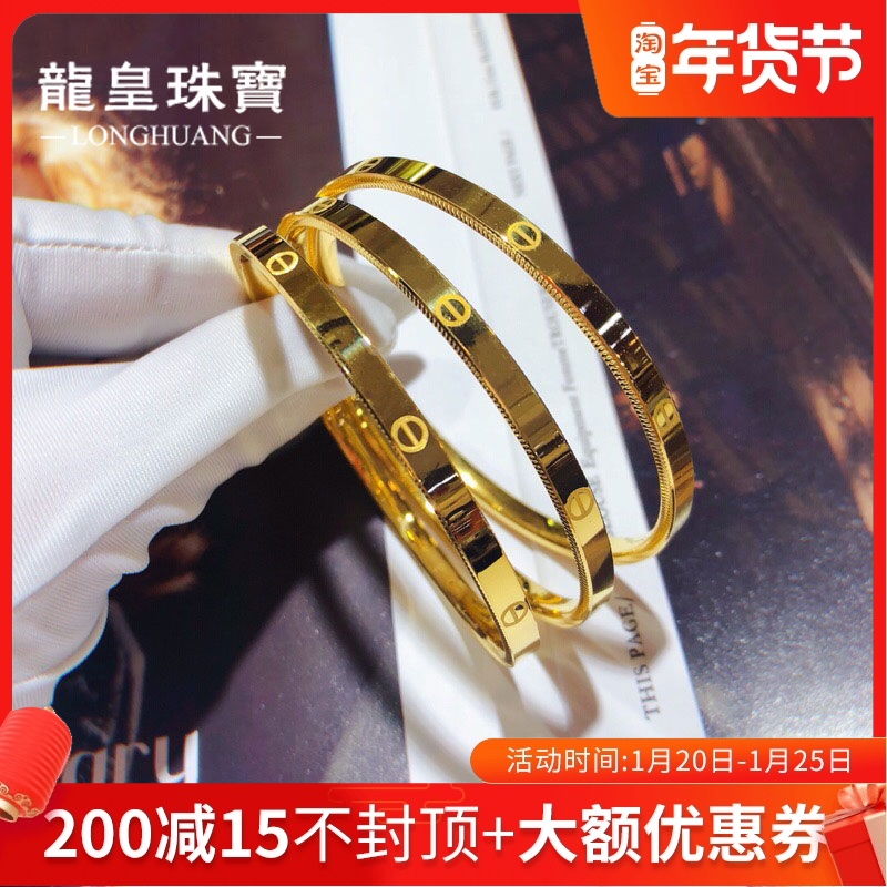 Boutique 3D hard gold gold aperture bracelet foot gold 999 fashion threaded bracelet women's simple pure gold bracelet
