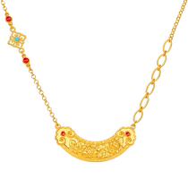 China Gold Ping An Lock necklace female foot gold pendant long life gold Forlock 38 Women's goddess Festival Gift 3095