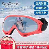 Factory spot adult magnet ski goggles double-layer anti-fog large cylinder ski equipment goggles card myopia