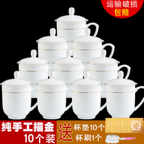 Jingdezhen Teacup ceramic household water cup set with lid Meeting room tea making office cup Hotel LOGO customization