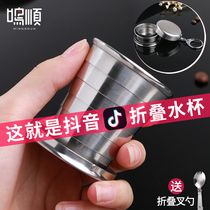 Folding water Cup folding Cup portable food grade 304 stainless steel retractable travel compression Cup high temperature resistant