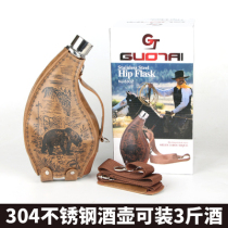 Russian small wine jug high-end 304 stainless steel portable 5 five-kilogram white wine thickened outdoor portable flat wine bottle