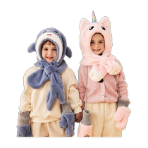 2023 new hat scarves integrated autumn and winter children hat men winter warm plush hair care ear hat cute girl