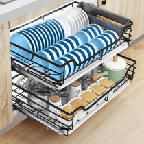 Willi Pull Basket Kitchen Overall Cupboard 304 Stainless Steel Double Layer of Drawer Seasoned seasoned Shelf built-in Dish Basket