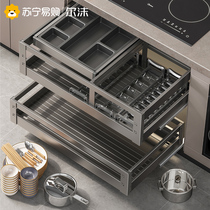 Four Seasons Body Wash Basket Kitchen Cupboard Bowl Basket 304 Stainless Steel Multilayer Drawer containing bowls Dish Chopstick Racks 2324