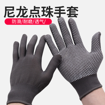 Gloves labor protection wear-resistant thin non-slip breathable nylon thin elastic dot bead work summer ladies black cloth work