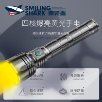 Smiling shark yellow flashlight strong light charging super bright household led outdoor long-range flashlight fish light