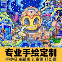 Purely hand-painted handwritten newspaper blackboard newspaper children's creative color science fiction sketch