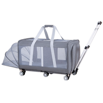 Large pet trolley case, hatchback, large capacity, portable outing cat bag, two car kennels, cat and dog pull cart