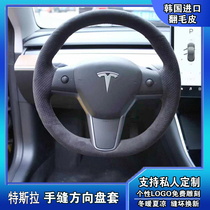 Tesla Model3ModelYModelSModelX Hand-stitched matte fur leather Steering wheel cover handle cover