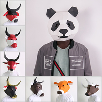 Panda paper model head cover animal mask diy handmade creative shaking sound Net red ins student Children activity props