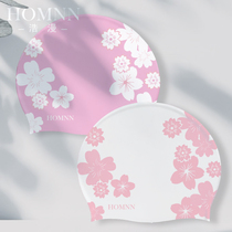 HOMNN swimming cap waterproof silicone swimming cap fashion long hair care and ear protection cute female large untiring adult