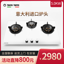 Teftepe three-eye gas stove household embedded fire Natural Gas large size white three-head gas stove