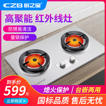 Red infrared gas stove liquefied gas natural gas embedded desktop polymer stainless steel gas stove household double stove