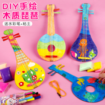Children's handmade wooden guitar DIY material painted Chinese style pipa kindergarten Primary School students small gift prizes