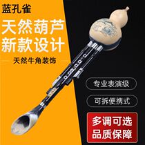 Blue Peacock Hulusi Natural Horn C cut to B tone D tune G Fadjustment Professional playing collection Courtesy Musical Instrument