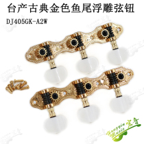 Classical guitar knobs and strings made in Taiwan, triple golden embossed pure 405 tuner knobs and strings