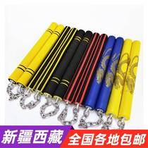 Double Knobstick Children Professional Training Double Screenstick Steel Chain Juvenile practice Real fight stainless steel II Stick Sponge Stick