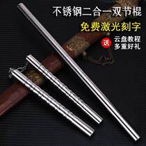 Fine steel Bamboo section stainless steel double-cut stick anti-slip double section stick power real fight aggravated hard stick on-board anti-body two-section stick