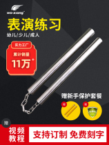 Stainless steel double knobstick anti-body real war Children taekwondo Li Xiaolong performs double-cut-stick beginner sponge stick