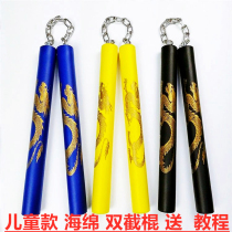 Double Screenstick Children Training Beginner to practice special sponge material Real fight Two-two-two-two-section stick adult double knot stick
