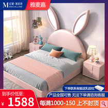 Yamiya bed children's princess bed real leather bed pink rabbit bed single bed Cartoon Net red bed yy