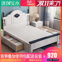 Bow candy soft bag princess bed Children solid wood girl drag bed pull mother bed drawer beech wood single bed