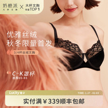 Lubricated underwear woman large bra small U-shaped lace embroidered lace full-cover cup beam chest ultra-flat adjustment type