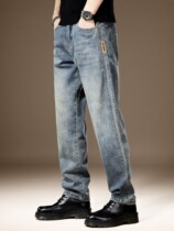 American retro stonewashed spring thin jeans for men loose straight trendy brand wide leg casual long pants for men