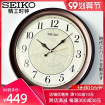 SEIKO Japan SEIKO clock 14 inch Brown modern minimalist map clock face living room bedroom quartz wall clock